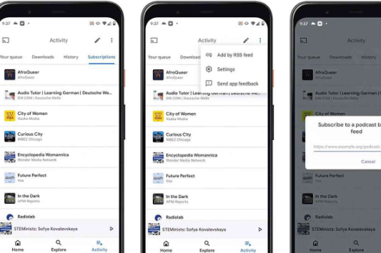 Google Podcasts获得了一项重要的新功能。现在,您可以订阅在谷歌播客应用程序使用的RSS提要播客的Android和iOS版,以及在网络上。在应用程序中,只需点击“活动”选项卡,滚动到“订阅”,点击三点菜单按钮,然后即可添加RSS feed的地址。