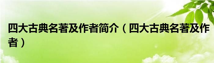 1、《三国演义》 作者:(元末明初)罗贯中《水浒传》 作者:(元末明初)施耐庵 《西游记》 作者:(明)吴承恩 《红楼梦》 作者:(清)曹雪芹。