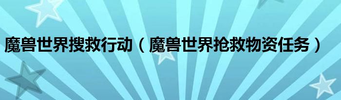 魔兽世界搜救行动(魔兽世界抢救物资任务)