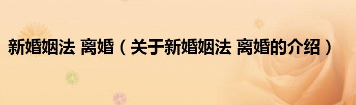 新婚姻法 离婚(关于新婚姻法 离婚的介绍)