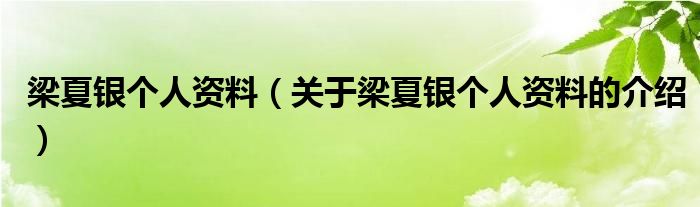 大家好,今天小乐来为大家解答以上的问题。梁夏银个人资料,关于梁夏银个人资料的介绍很多人还不知道,现在让我们一起来看看吧!