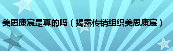 美思康宸是真的吗(揭露传销组织美思康宸)