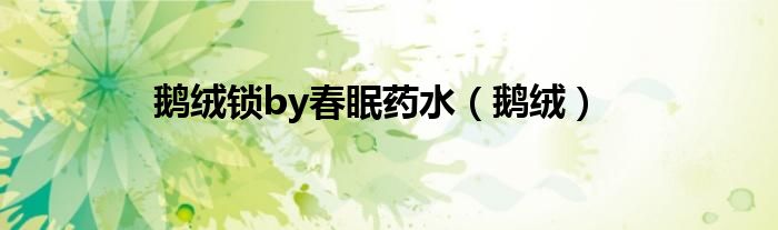 关于鹅绒锁by春眠药水,鹅绒这个很多人还不知道,今天菲菲来为大家解答以上的问题,现在让我们一起来看看吧!