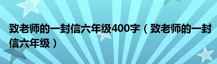 关于致老师的一封信六年级400字,致老师的一封信六年级这个很多人还不知道,今天菲菲来为大家解答以上的问题,现在让我们一起来看看吧!