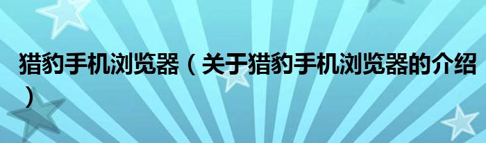 大家好,小都来为大家解答以上的问题。猎豹手机浏览器,关于猎豹手机浏览器的介绍很多人还不知道,现在让我们一起来看看吧!