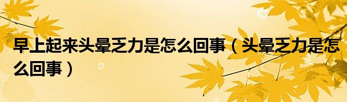 关于早上起来头晕乏力是怎么回事,头晕乏力是怎么回事这个很多人还不知道,今天菲菲来为大家解答以上的问题,现在让我们一起来看看吧!