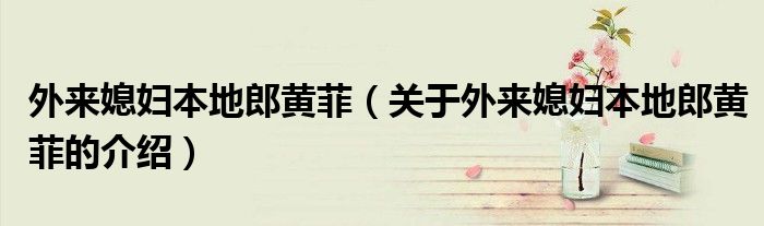 大家好,小都来为大家解答以上的问题。外来媳妇本地郎黄菲,关于外来媳妇本地郎黄菲的介绍很多人还不知道,现在让我们一起来看看吧!