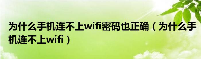 为什么手机连不上wifi密码也正确(为什么手机连不上wifi)