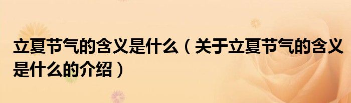 大家好,小都来为大家解答以上的问题。立夏节气的含义是什么,关于立夏节气的含义是什么的介绍很多人还不知道,现在让我们一起来看看吧!