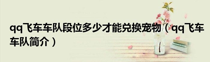 qq飞车车队段位多少才能兑换宠物(qq飞车车队简介)