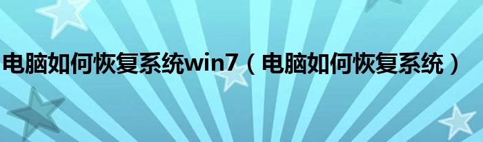 电脑如何恢复系统win7(电脑如何恢复系统)