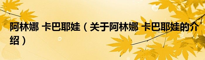 阿林娜 卡巴耶娃(关于阿林娜 卡巴耶娃的介绍)