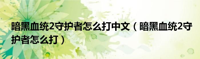 暗黑血统2守护者怎么打中文,暗黑血统2守护者怎么打这个很多人还不知道,小飞来为大家解答以上的问题。现在让我们一起来看看吧!