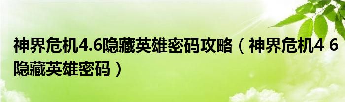 神界危机4.6隐藏英雄密码攻略,神界危机4 6隐藏英雄密码很多人还不知道,乐乐来为大家解答以上问题,现在让我们一起来看看吧!