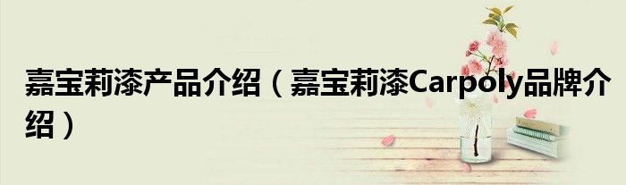 大家好,小源来为大家解答以上问题。嘉宝莉漆产品介绍,嘉宝莉漆Carpoly品牌介绍很多人还不知道,现在让我们一起来看看吧!