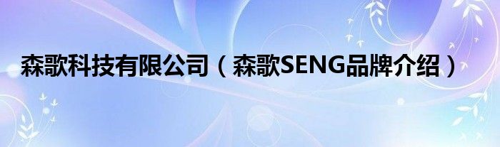 大家好,小源来为大家解答以上问题。森歌科技有限公司,森歌SENG品牌介绍很多人还不知道,现在让我们一起来看看吧!