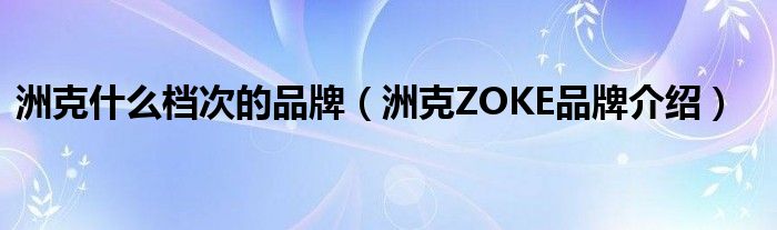 洲克什么档次的品牌(洲克ZOKE品牌介绍)