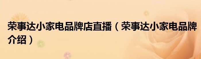 荣事达小家电品牌店直播(荣事达小家电品牌介绍)