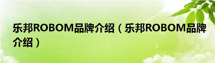乐邦ROBOM品牌介绍(乐邦ROBOM品牌介绍)
