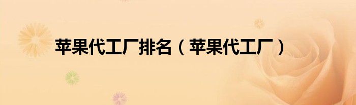 苹果代工厂排名,苹果代工厂很多人还不知道,乐乐来为大家解答以上问题,现在让我们一起来看看吧!