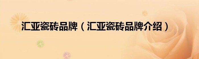 大家好,小源来为大家解答以上问题。汇亚瓷砖品牌,汇亚瓷砖品牌介绍很多人还不知道,现在让我们一起来看看吧!