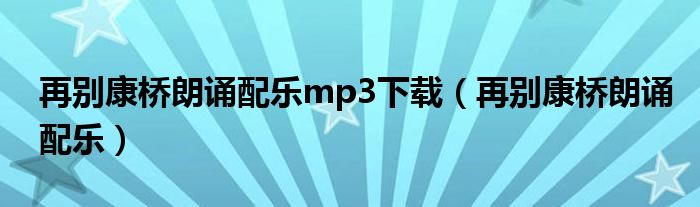 大家好,小飞来为大家解答以上的问题。再别康桥朗诵配乐mp3下载,再别康桥朗诵配乐这个很多人还不知道,现在让我们一起来看看吧!