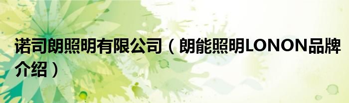 大家好,小源来为大家解答以上问题。诺司朗照明有限公司,朗能照明LONON品牌介绍很多人还不知道,现在让我们一起来看看吧!