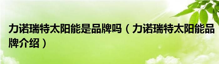 力诺瑞特太阳能是品牌吗(力诺瑞特太阳能品牌介绍)
