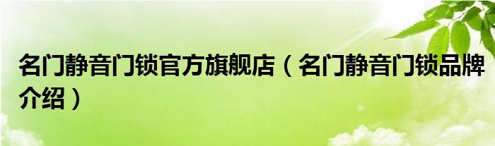 大家好,小源来为大家解答以上问题。名门静音门锁官方旗舰店,名门静音门锁品牌介绍很多人还不知道,现在让我们一起来看看吧!