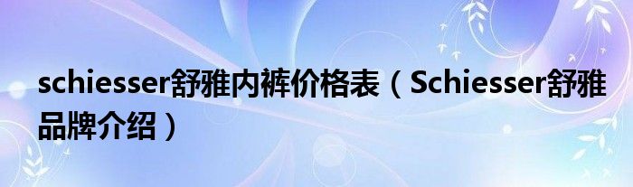 大家好,小源来为大家解答以上问题。schiesser舒雅内裤价格表,Schiesser舒雅品牌介绍很多人还不知道,现在让我们一起来看看吧!