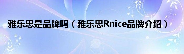 大家好,小源来为大家解答以上问题。雅乐思是品牌吗,雅乐思Rnice品牌介绍很多人还不知道,现在让我们一起来看看吧!