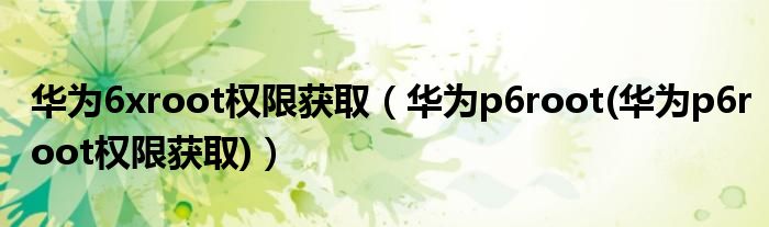 大家好,小常来为大家解答以上问题。华为6xroot权限获取,华为p6root(华为p6root权限获取)很多人还不知道,现在让我们一起来看看吧!