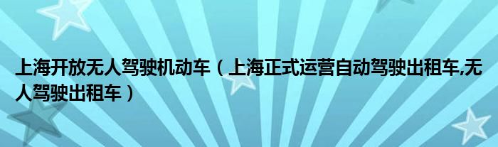 大家好,小常来为大家解答以上问题。上海开放无人驾驶机动车,上海正式运营自动驾驶出租车,无人驾驶出租车很多人还不知道,现在让我们一起来看看吧!