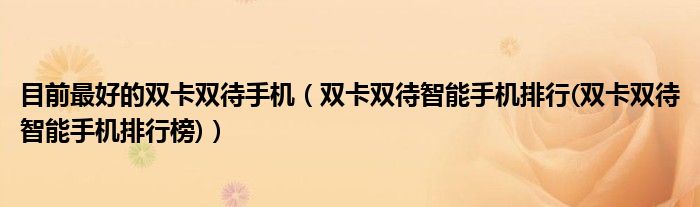 大家好,小常来为大家解答以上问题。目前最好的双卡双待手机,双卡双待智能手机排行(双卡双待智能手机排行榜)很多人还不知道,现在让我们一起来看看吧!