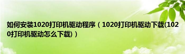 大家好,小常来为大家解答以上问题。如何安装1020打印机驱动程序,1020打印机驱动下载(1020打印机驱动怎么下载)很多人还不知道,现在让我们一起来看看吧!