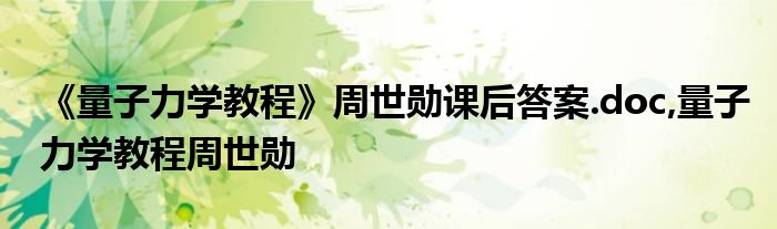 大家好,小常来为大家解答以上问题。《量子力学教程》周世勋课后答案.doc,量子力学教程周世勋很多人还不知道,现在让我们一起来看看吧!
