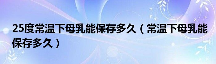 大家好,linda来为大家解答以上的问题。25度常温下母乳能保存多久,常温下母乳能保存多久很多人还不知道,现在让我们一起来看看吧!