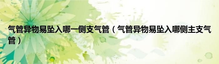 1、一般异物容易掉入右主支气管。因为右主支气管较粗,长轴延长线之间的夹角较小,即右主支气管相当于气管的直接延续,所以异物进入右主支气管的概率远大于左主支气管。