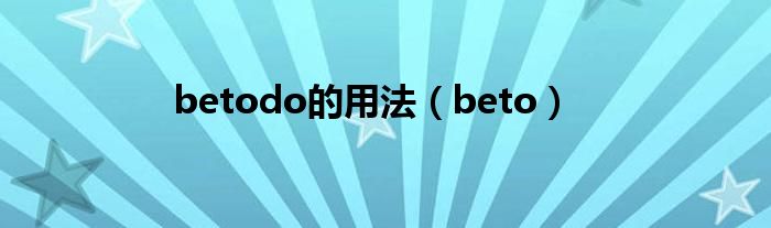 大家好,雨雨来为大家解答以上问题,betodo的用法,beto很多人还不知道,现在让我们一起来看看吧!