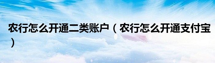 大家好,雨雨来为大家解答以上问题,农行怎么开通二类账户,农行怎么开通支付宝很多人还不知道,现在让我们一起来看看吧!