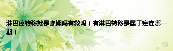 大家好,linda来为大家解答以上的问题。淋巴癌转移就是晚期吗有救吗,有淋巴转移是属于癌症哪一期很多人还不知道,现在让我们一起来看看吧!