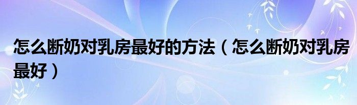 怎么断奶对乳房最好的方法(怎么断奶对乳房最好)