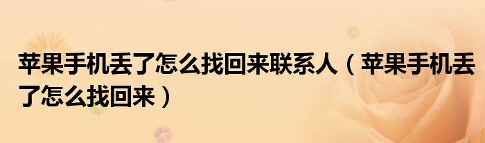 苹果手机丢了怎么找回来联系人(苹果手机丢了怎么找回来)