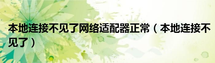 大家好,雨雨来为大家解答以上问题,本地连接不见了网络适配器正常,本地连接不见了很多人还不知道,现在让我们一起来看看吧!