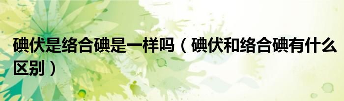 碘伏是络合碘是一样吗(碘伏和络合碘有什么区别)