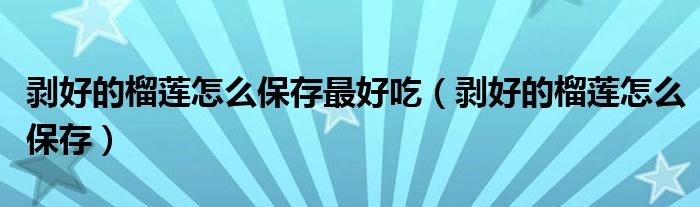 剥好的榴莲怎么保存最好吃(剥好的榴莲怎么保存)