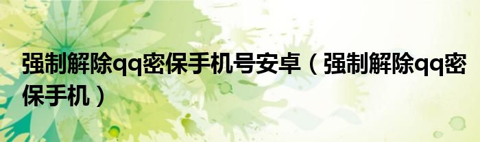 大家好,小晋来为大家解答以下问题,关于强制解除qq密保手机号安卓,强制解除qq密保手机很多人还不知道,今天让我们一起来看看吧!