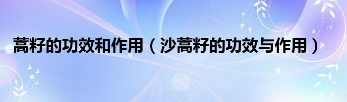 蒿籽的功效和作用(沙蒿籽的功效与作用)