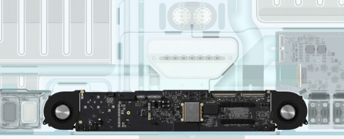 Adewale发布的镜头还揭示了实际上隐藏在新的4.5K显示面板后面的内容,该显示面板包括各种互连以及大型扬声器室。这一切都是极度定制,整洁且组织良好的,其方式是大多数其他OEM永远不会理会的。主板的两侧还有几个小风扇,显示它没有像M1供电的MacBook Air那样被动冷却,而是像M1 MacBook Pro和Mac mini那样主动冷却。