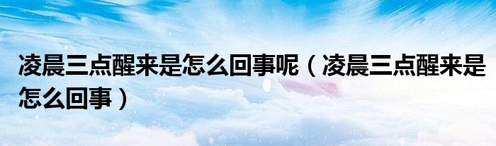 大家好,linda来为大家解答以上的问题。凌晨三点醒来是怎么回事呢,凌晨三点醒来是怎么回事很多人还不知道,现在让我们一起来看看吧!